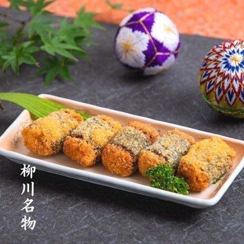 鰻のタレで味をつけて海苔で巻き、油でサクッと食感に